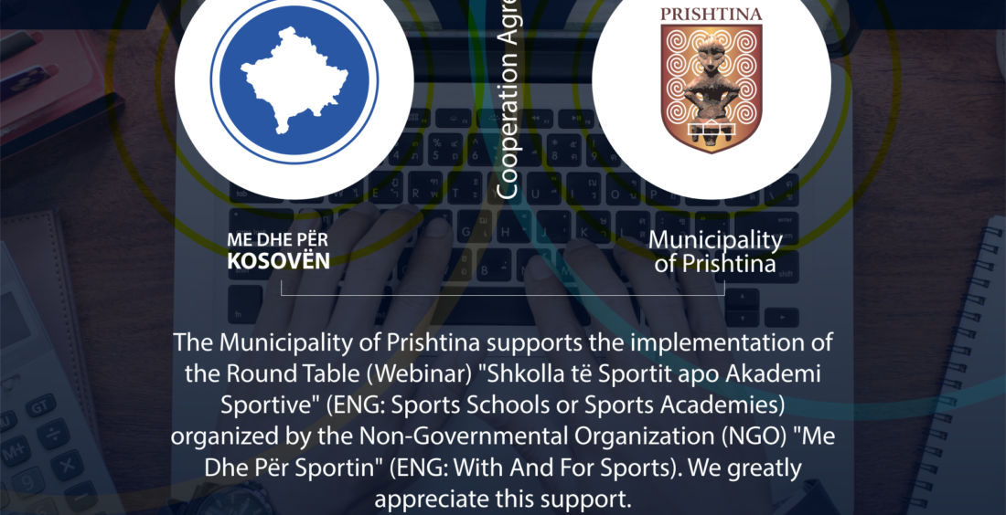 The Municipality of Prishtina supports the implementation of the Round Table (Webinar) “Sports Schools or Sports Academies” organized by the Non-Governmental Organization (NGO) “Me Dhe Për Sportin”. We greatly appreciate this support.
